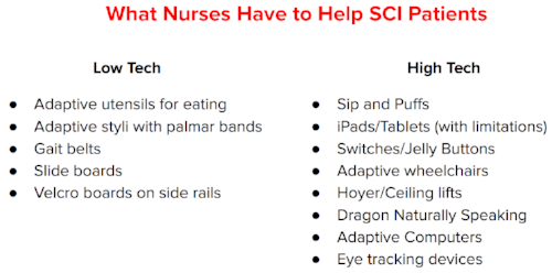 We found that the some of the technical aids being used at UMHS for SCI patients were: